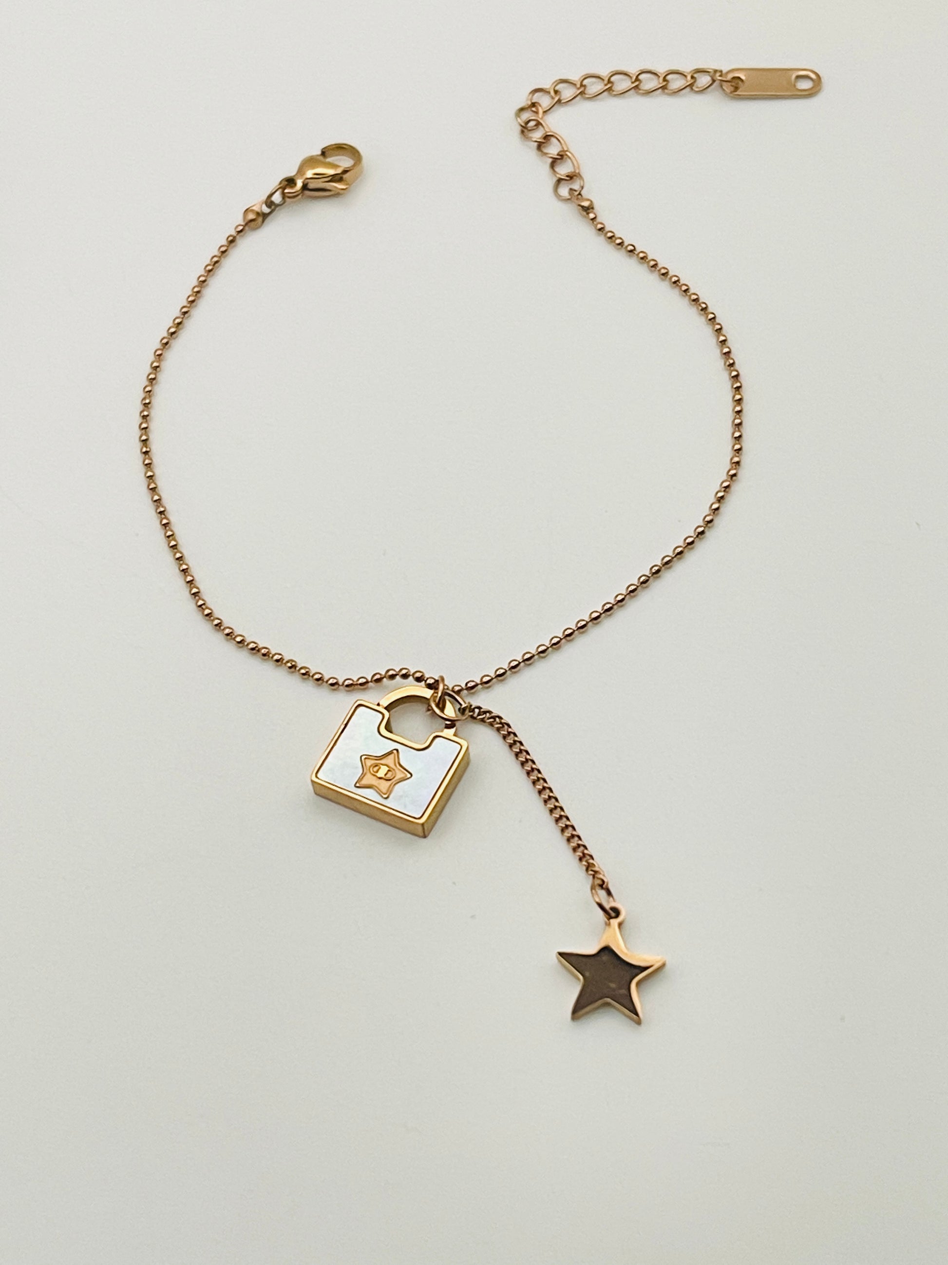 Rose Gold Star and Lock Dangle Bracelet