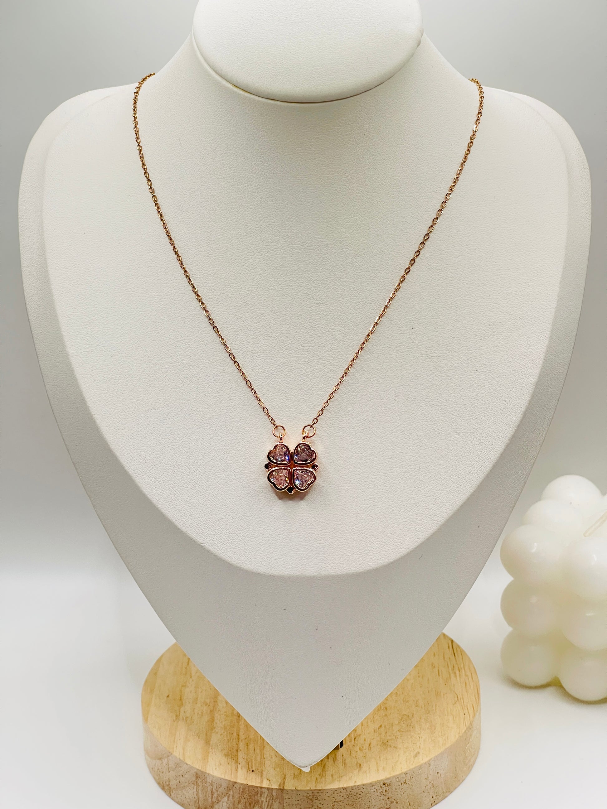 Rose Gold Convertible 2-in-1 Magnetic Clover Necklace