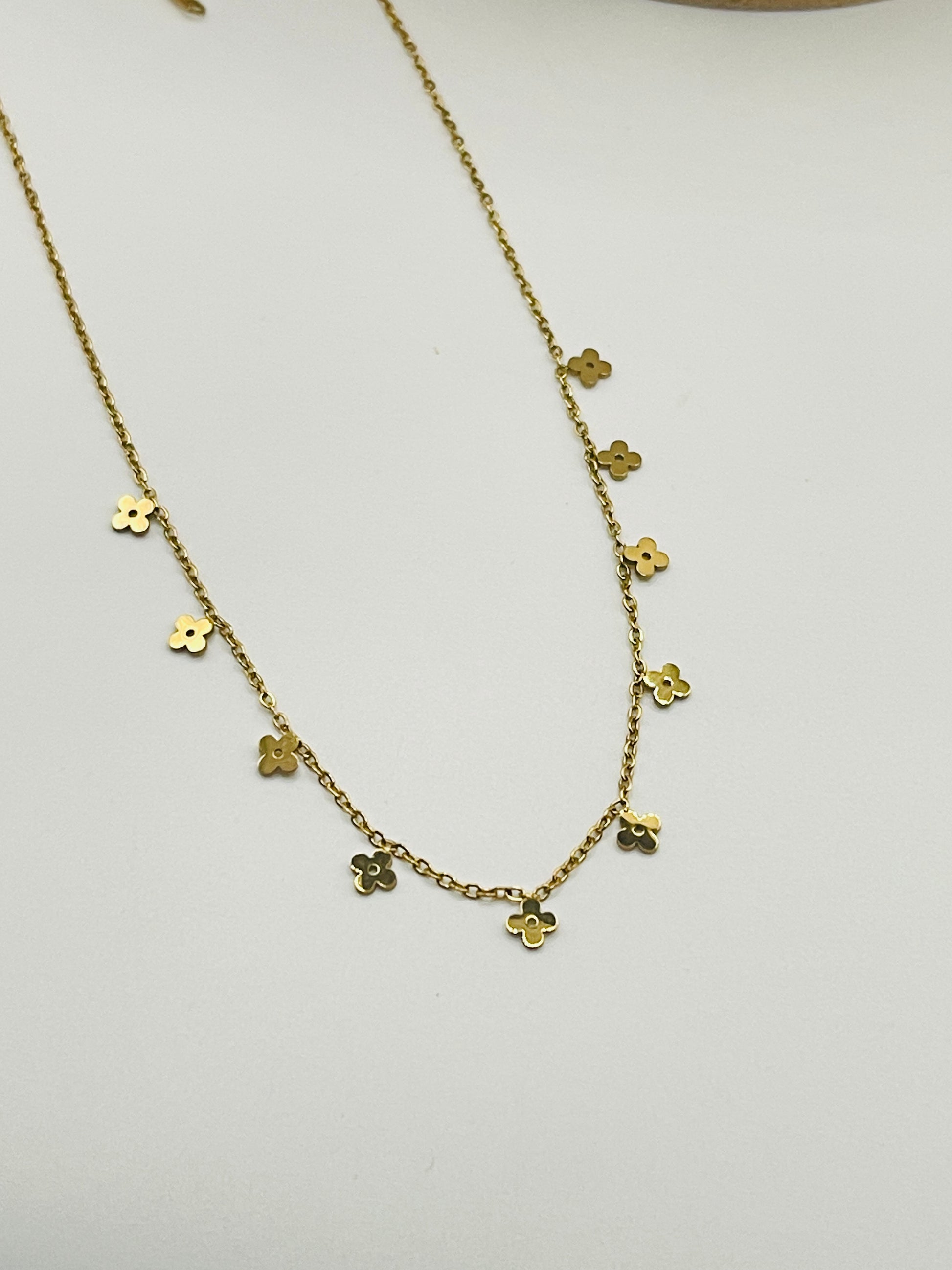 - Delicate Design: Features multiple small, flat clover charms suspended along the chain for a subtle drop effect.