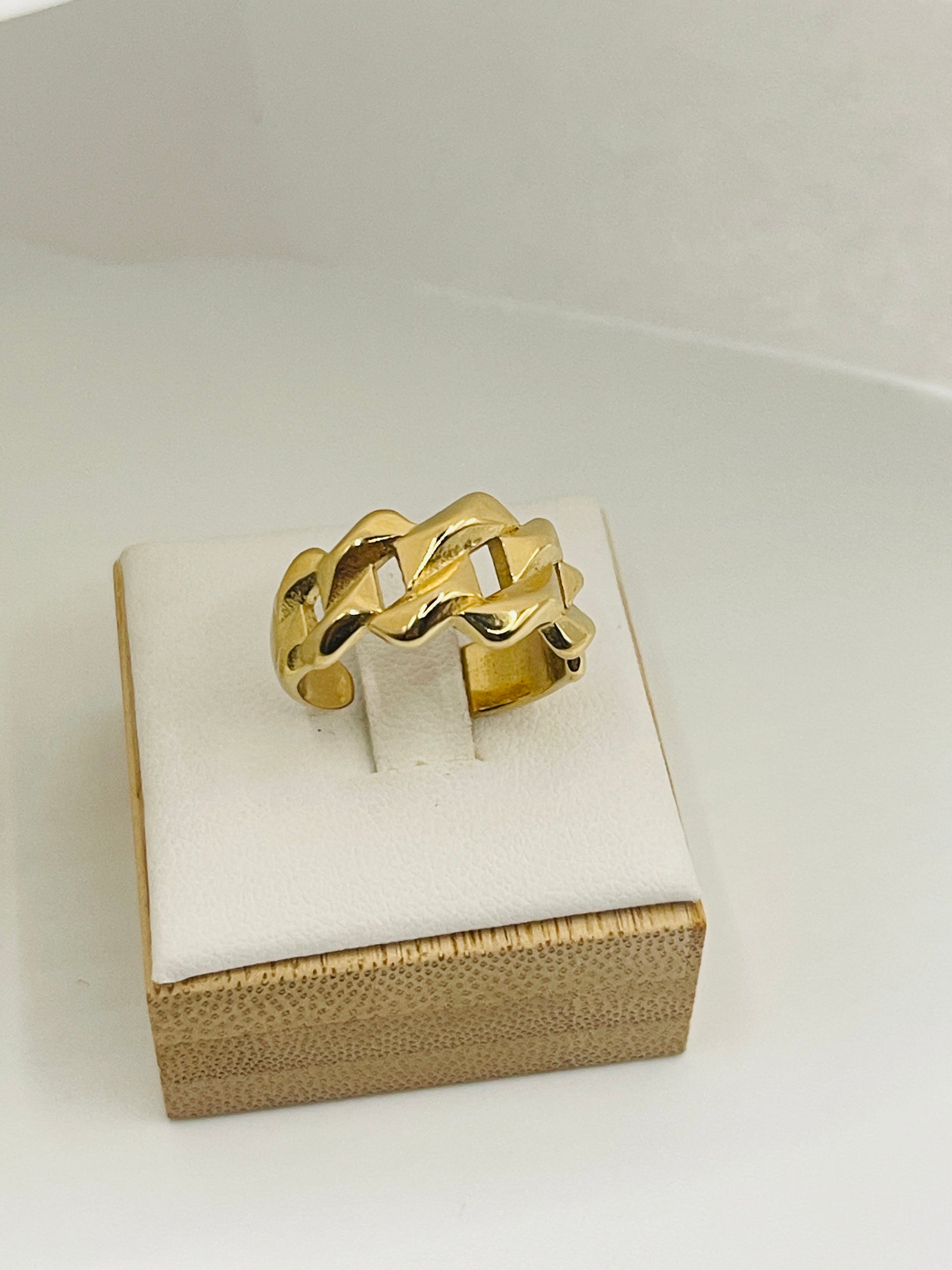 - Design: Wide band featuring a dimensional Cuban/curb chain link pattern.