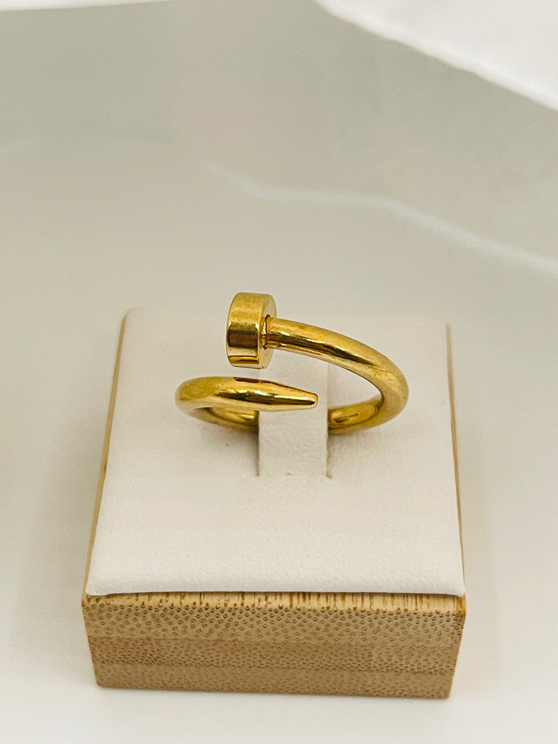 - Design: Unique, sculptural 'nail' motif with an open-cuff band.