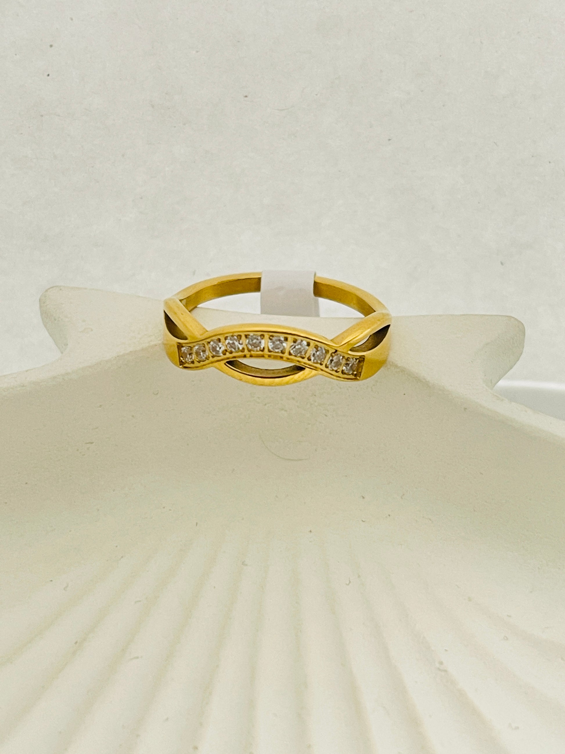 - Design: Modern curved band with a stylish, sweeping crossover pattern.