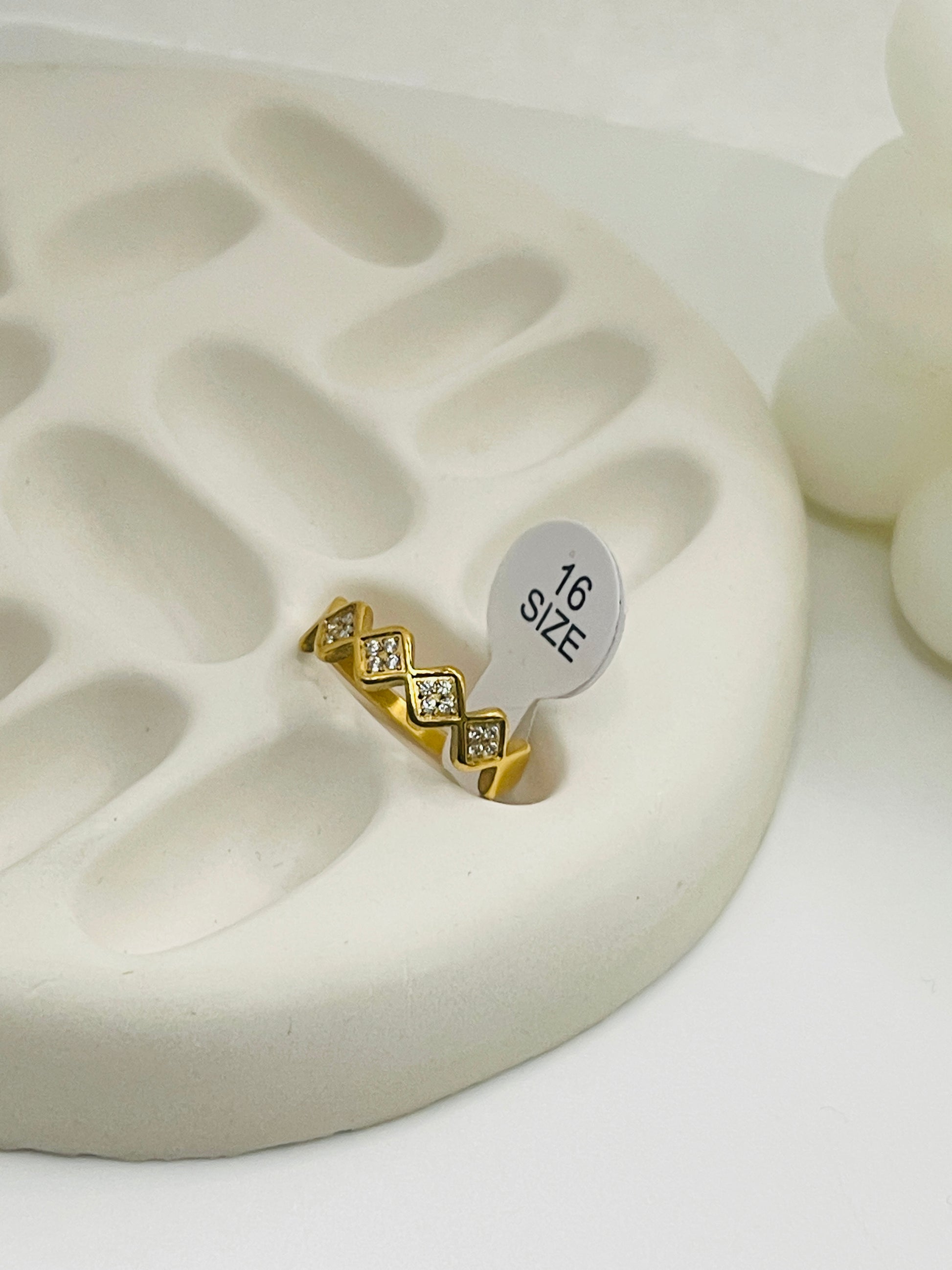 - Gemstone Shape: Five brilliant Princess-Cut (square) stones.